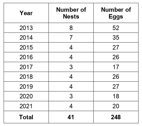 Nest management is a long-term, proven effective method of stabilizing goose populations. (See the chart below right for an example of a site we managed.) Replacing already laid eggs with wooden ones will keep new geese from hatching. Discouraging future nesting with dogs or other scare tactics keep populations stable. We have seen how effective these methods are in years to come. Modifying the landscape, so geese find your property less inviting, is another important step. Adding native grasses and other plants will deter geese from nesting, while increasing the natural beauty of the surroundings.